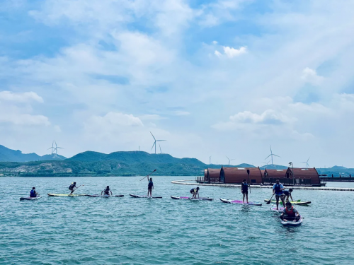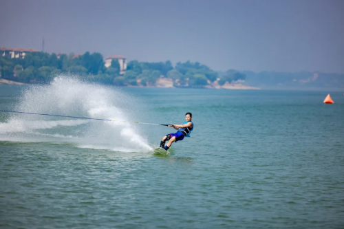 天台湖4500余亩宽阔水域,水深适中,风力稳定,地形多样,配套完善,将时尚酷炫的水上运动与天台湖的自然水域风光完美融合,成为了亚洲尾波滑水系列赛的理想举办地。