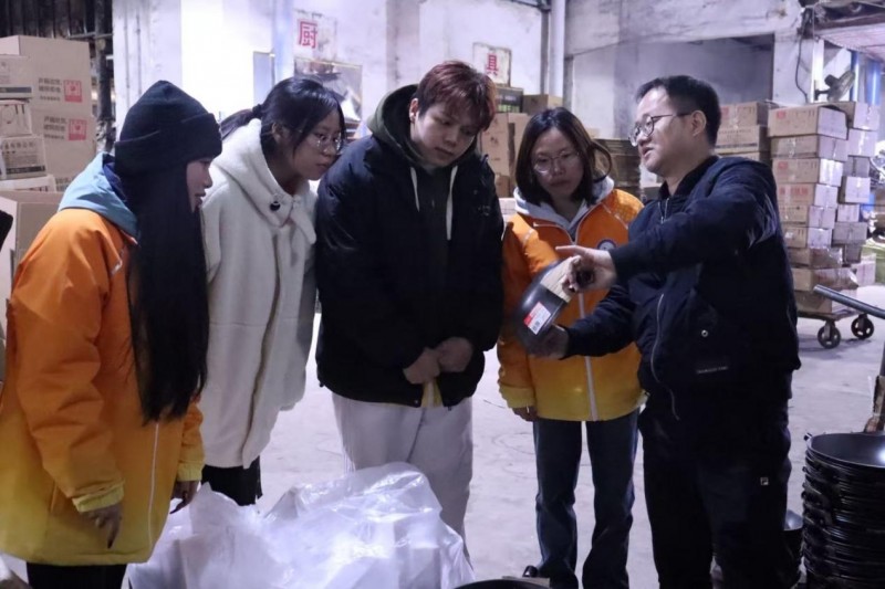 在与企业的座谈交流中,团队成员详细了解了陆川铁锅的历史渊源、工艺特色、市场销路以及当前在年轻化传播、品牌化运营中面临的瓶颈与挑战。庞世能大师向队员们深情讲述了陆川铁锅的发展脉络与家族世代坚守的匠人故事。他表示:“非遗不能只留在过去,更需要年轻一代用新思维去激活。”作为项目导师,他将全程指导团队深入剖析铁锅铸造技艺的核心文化内涵,为项目研究的落地提供专业技术把关与实践指导。